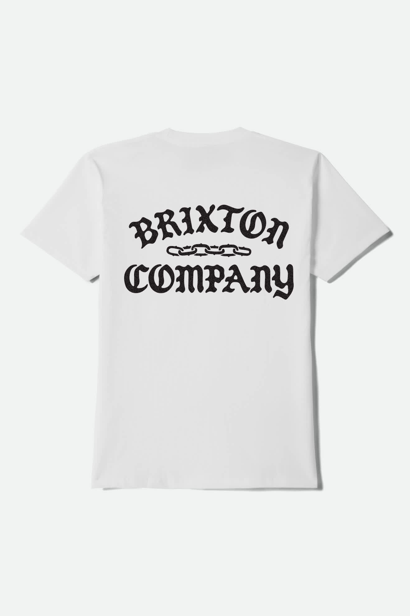 Ink meets thread in this tattoo-inspired design. The Chains short sleeve tee features 100% cotton construction with bold chain graphics and "Brixton Company" lettering in traditional tattoo-style font across both front and back. The standard fit works whether you're checking out local shops, hitting up shows, or just repping the brand with some classic ink-inspired style. Soft cotton feels great all day, while the vintage tattoo aesthetic connects to that authentic garage culture and individual expression that's always been part of the scene.