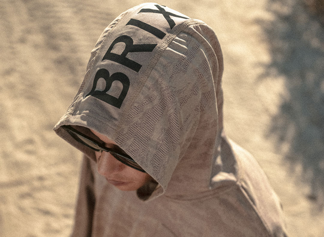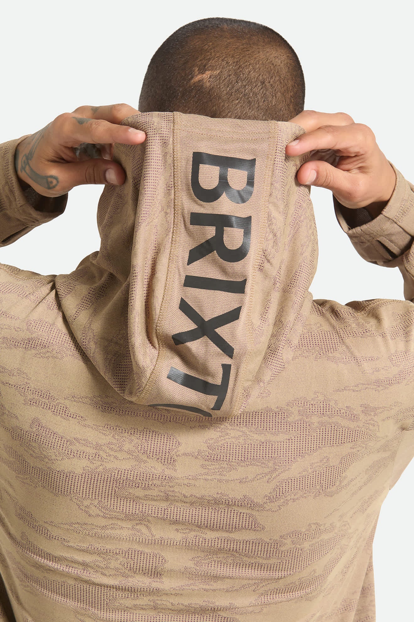 UPF-rated sun hoodie with camo mesh and reflective details for all-day sun protection.