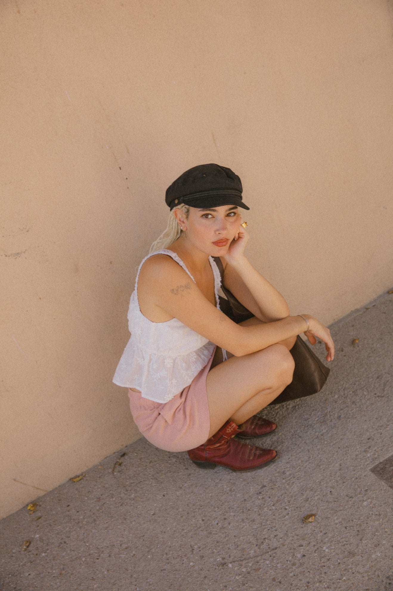 A timeless fisherman cap with a short brim and woven cord detail.